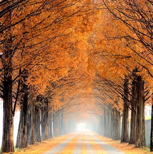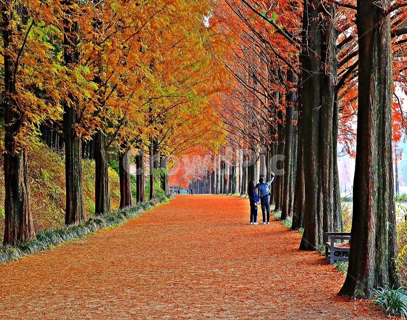 전라남도 담양에 위치한 메타세쿼이아길. 키가 높은 메타세쿼이아 숲 사이로 난 길 위를 걷거나 자전거로 달리면, 마치 유럽 숲속에 들어온 듯한 분위기가 물씬 납니다. 가을엔 나무의 금빛과 빛줄기가 어울리며 사진 찍기 좋은 ‘감성 로드’로도 유명해요.