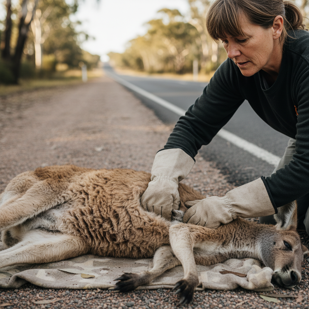 캥거루(그리고 일부 유대류)는 어미가 사고로 발견되더라도, 상황에 따라 육아낭(주머니) 안에 새끼가 있을 가능성이 제기됩니다. 그래서 구조/관리 인력은 사체를 확인할 때 “주머니를 확인했는지”를 매우 중요하게 다룹니다.