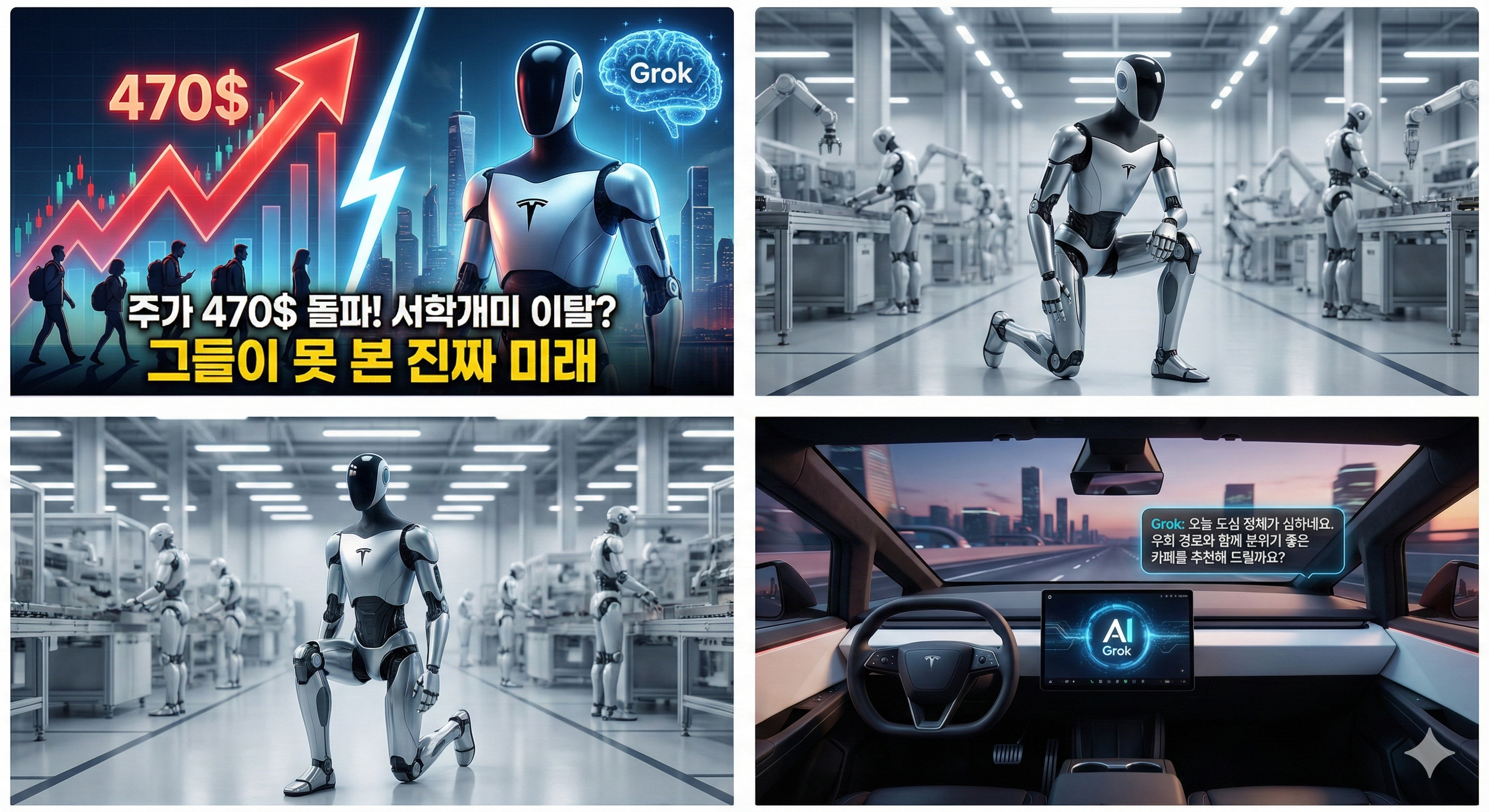 SEO 마케팅 전문가의 시선으로 본 오늘의 시장은 명확한 메시지를 던지고 있습니다. 시장은 더 이상 테슬라를 단순한 '자동차 제조사'로 평가하지 않는다는 것입니다. 지금 주가를 끌어올리는 동력은 당장의 판매 실적이 아닌, [테슬라]가 그리는 거대한 AI 플랫폼으로서의 미래 가치입니다. 그 중심에 있는 핵심 뉴스들을 전문가의 시각으로 냉정하게 분석해 드립니다.