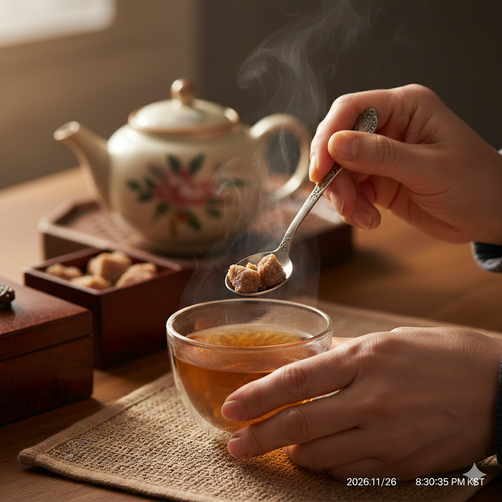 alt 추천: “전통 설탕 소량 섭취 실사 - 차와 음료에서 설탕 줄이는 중년 혈당 관리 습관”