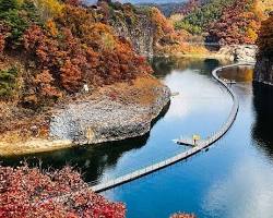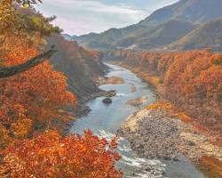 강원도 철원에 위치한 한탄강 주상절리길은 가을철 ‘국내 최고의 협곡 산책길’로 불립니다. 용암이 식으며 생긴 현무암 절벽과 한탄강의 푸른 물이 어우러져, 걷는 내내 자연이 만든 조각 작품을 감상할 수 있죠. 특히 가을엔 붉은 단풍이 절벽을 타고 내려와 장관을 이룹니다.