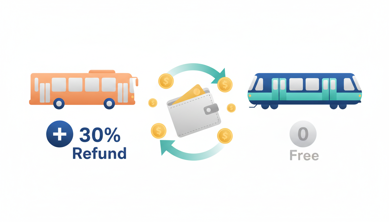 버스는 유료이지만, K-패스 2.0 이용 시 금액의 30% 환급