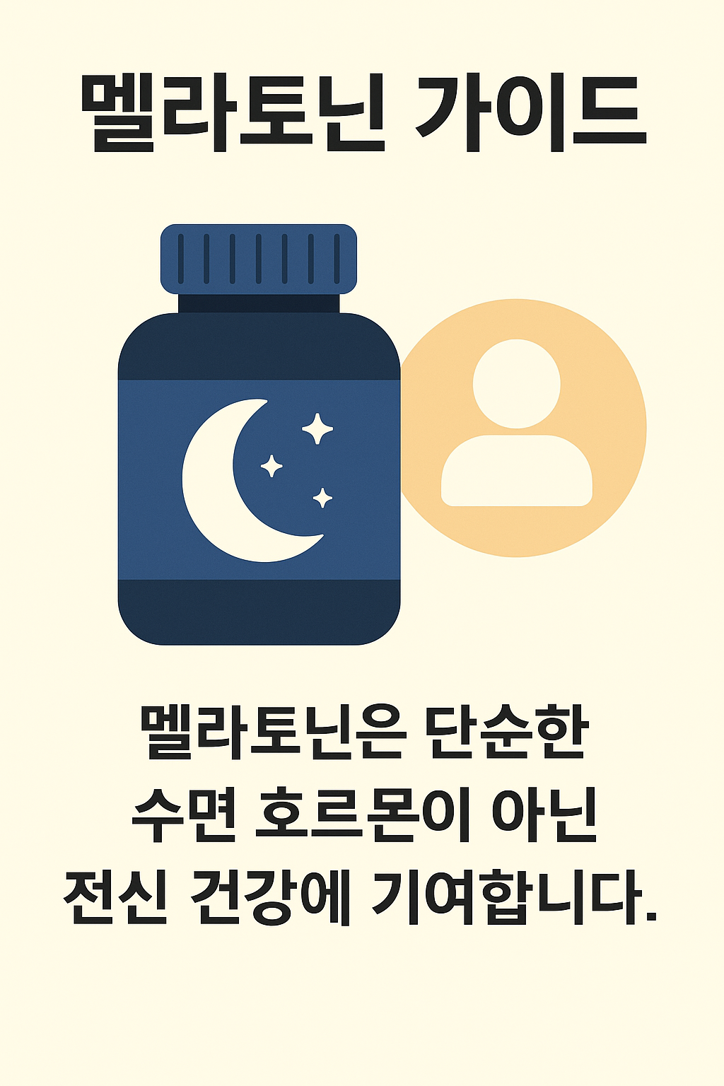 멜라토닌은 뇌의 송과체에서 분비되는 호르몬으로, 낮에는 분비가 억제되고 밤이 되면 분비가 증가해 몸에 “잘 시간” 신호를 보냅니다.