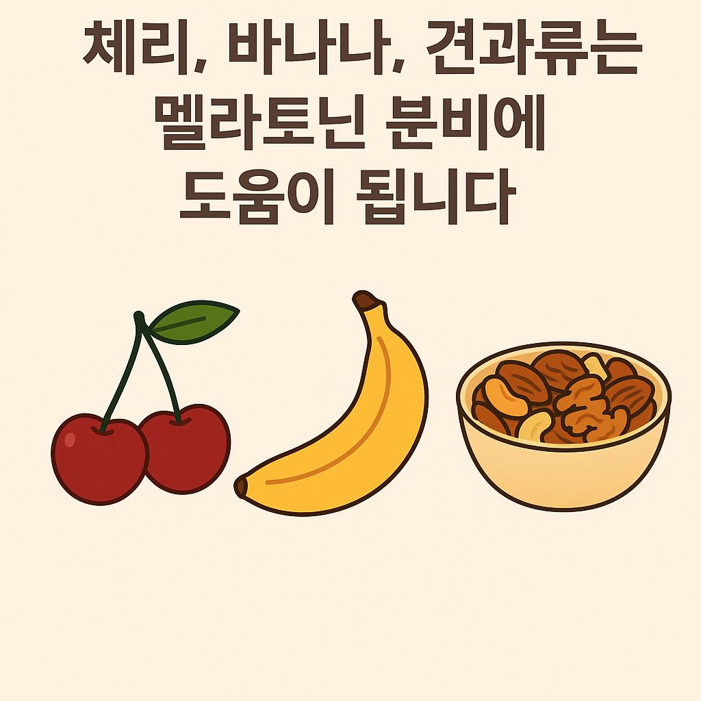 - 식이 요법: 체리, 바나나, 견과류 등 멜라토닌 함유 식품 섭취